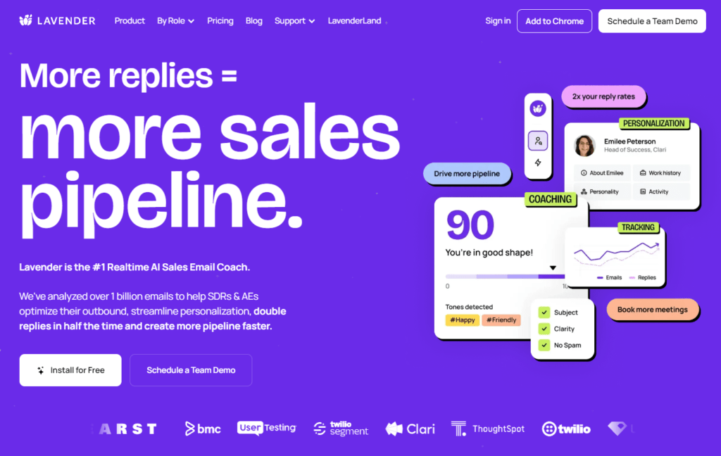 Lavender is an AI-powered tool that optimizes email outreach and helps improve email personalization. It offers real-time suggestions to enhance email engagement.