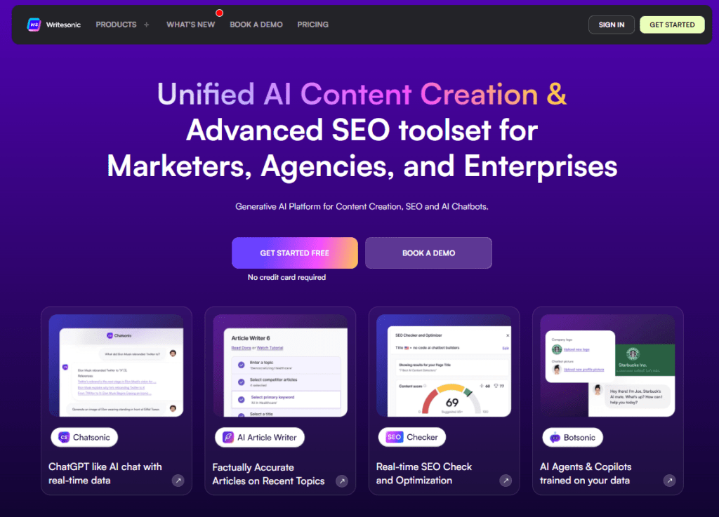 Writesonic is an AI tool that focuses on producing creative and compelling content. It offers features like blog post generation, landing page copy, and even YouTube video descriptions, making it a comprehensive solution for content creators.