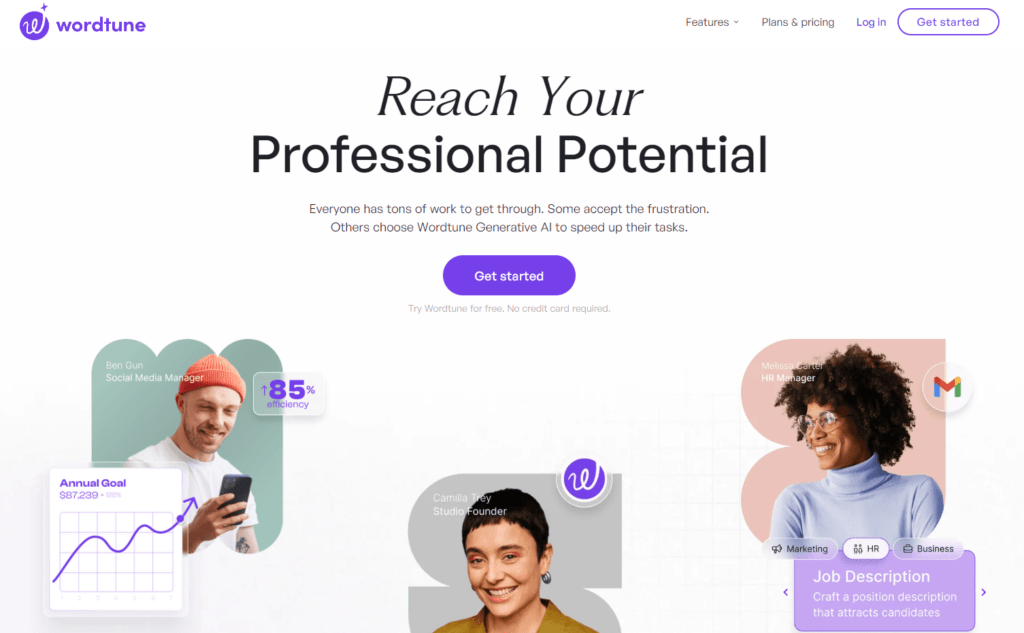 Wordtune enhances your writing by providing suggestions for rephrasing and improving sentences. It acts as a virtual writing assistant, helping you create clearer and more compelling copy.