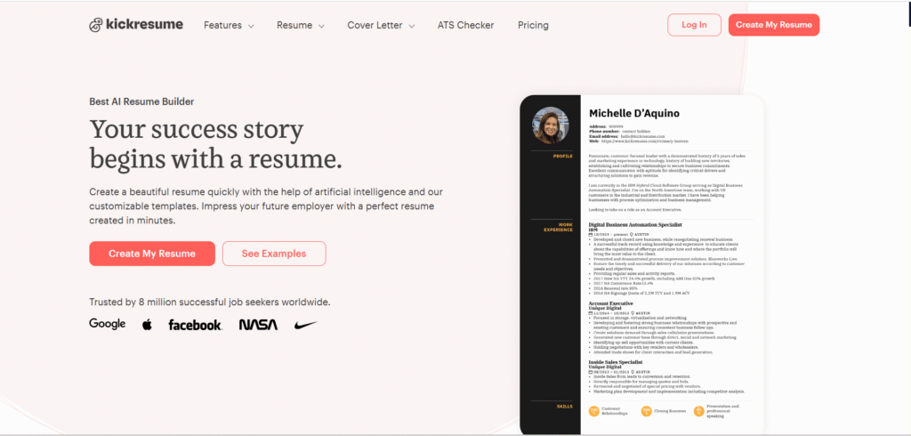 Kickresume is one of the most polished AI resume and cover letter builders available.