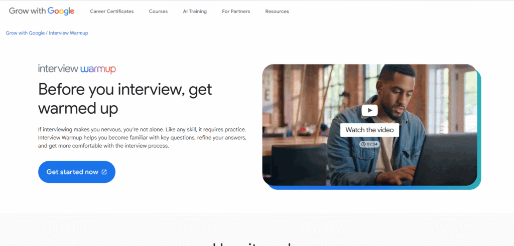 Interview Warmup by Google uses AI to simulate real interview scenarios and help you practice answering questions in your field.