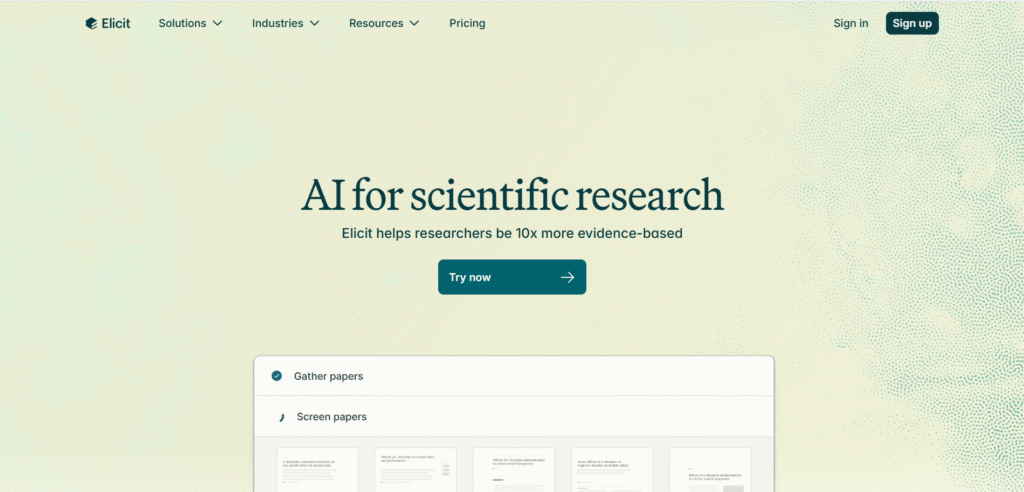 Elicit is one of the most powerful AI research assistants designed specifically for academics. It helps you find, analyze, and summarize research papers — even if you’re not sure where to start.