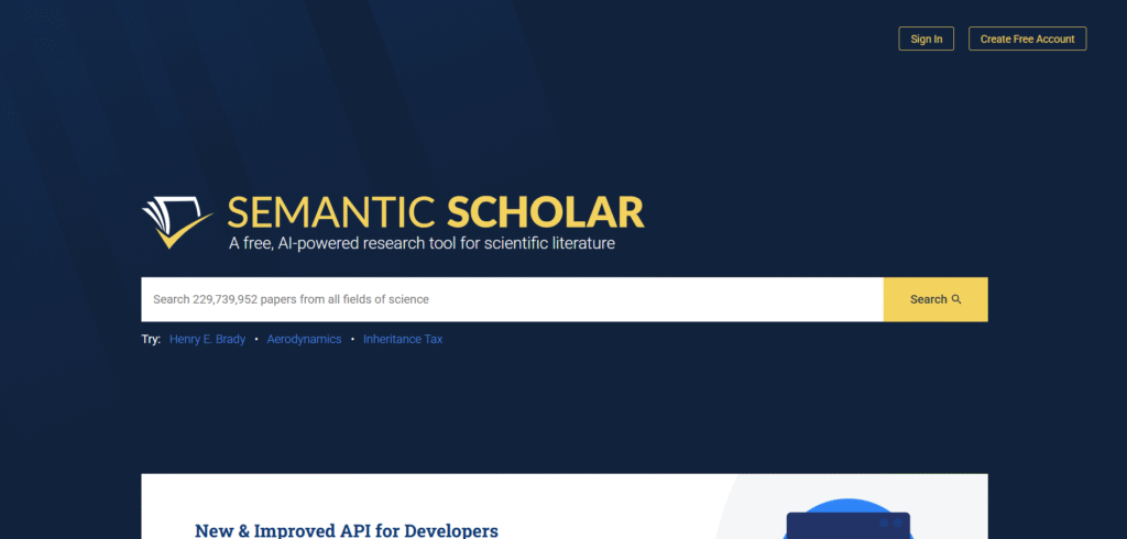 Semantic Scholar is an AI-powered academic search engine developed by the Allen Institute for AI.