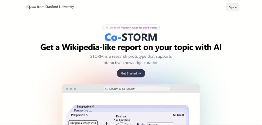 STORM is an emerging AI-assisted knowledge synthesis platform that generates structured overviews and summaries from large data sources.