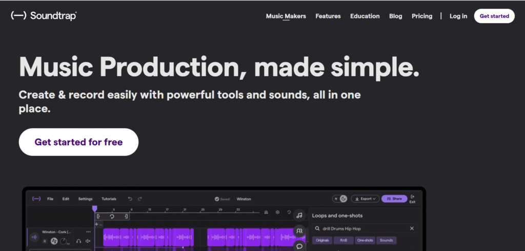 Soundtrap combines cloud music production with AI-assisted features like auto-tuning, beat detection, and smart tempo alignment. You can record, edit, and collaborate on projects directly in your browser. Integration with Spotify makes it a go-to for musicians and podcast producers.