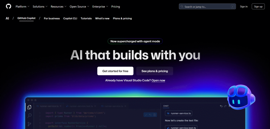 GitHub Copilot, powered by OpenAI’s Codex, is the most popular AI pair programmer embedded directly into your IDE (VS Code, JetBrains, Neovim, etc.). It suggests entire lines or functions based on your current context, detects patterns in your project, and adapts to your coding style over time. It even helps with unit testing, documentation, and language translation between frameworks.