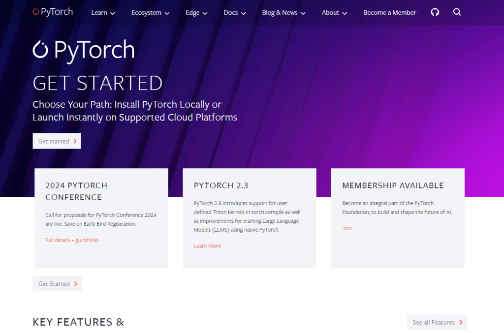 Features: PyTorch, developed by Facebook’s AI Research lab, is another open-source machine learning library. It is praised for its simplicity and ease of use, especially for beginners.