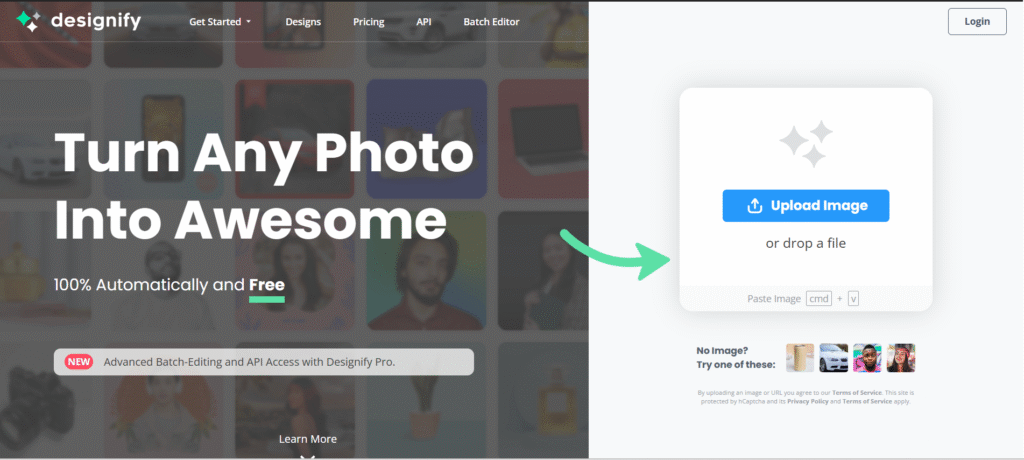 Designify automates photo enhancement and layout design for product images, thumbnails, and marketing banners. Upload any image, and it will automatically remove the background, enhance lighting, and apply ready-made professional templates.