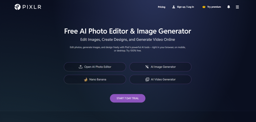 Pixlr’s AI Auto Adjust automatically balances tone, lighting, and colors — while its text-to-image generator can produce unique compositions directly in the browser.