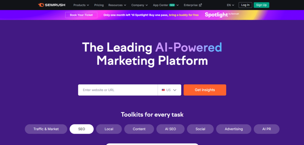 🥇 1. Semrush (with AI Content Toolkit & Copilot)