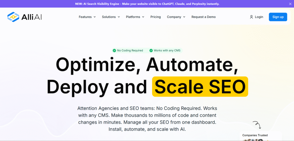 | Alli AI | SEO automation | E-commerce, large sites | Auto meta & alt tag fix | alliai.com |