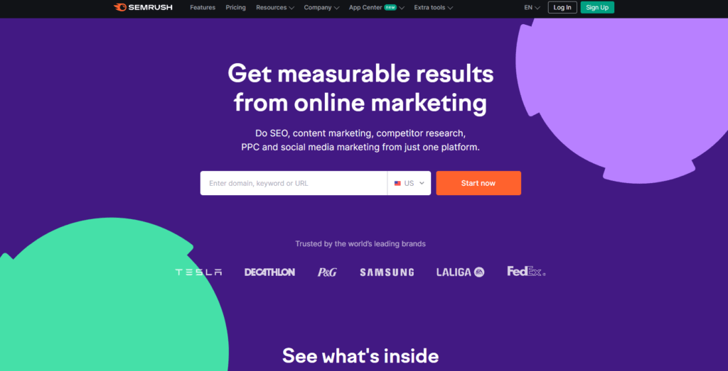 Features: SEMrush offers a robust suite of tools for SEO, PPC, content marketing, and social media. It provides comprehensive data and insights to optimize online visibility.