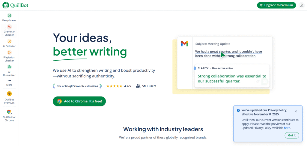- QuillBot AI Detector – Integrated AI checker within the QuillBot ecosystem that flags machine-generated sentences in real time.