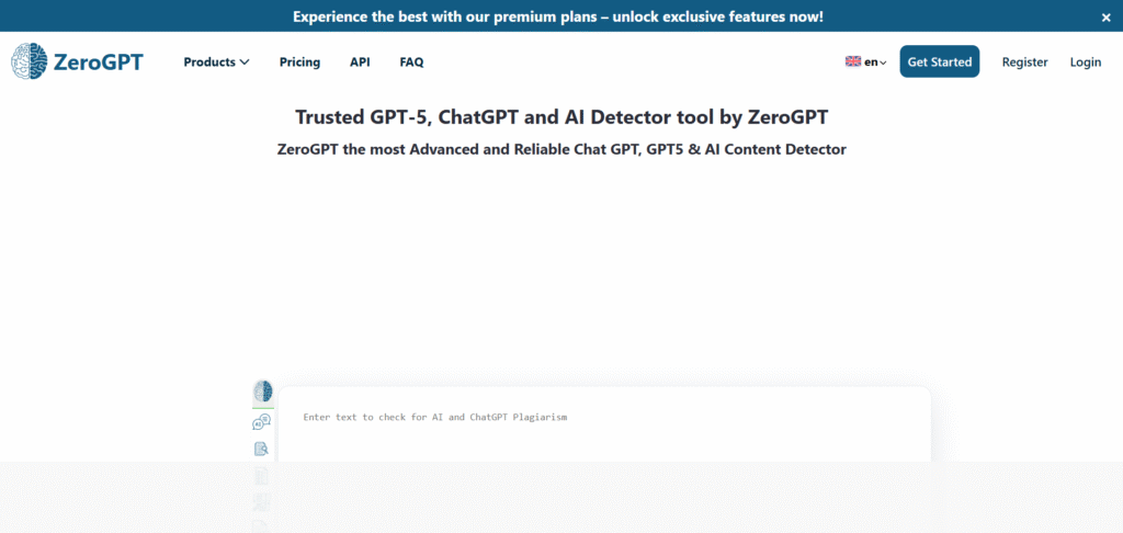 - ZeroGPT – Provides detailed AI probability scores and multi-model text pattern analysis for educators and SEO experts.