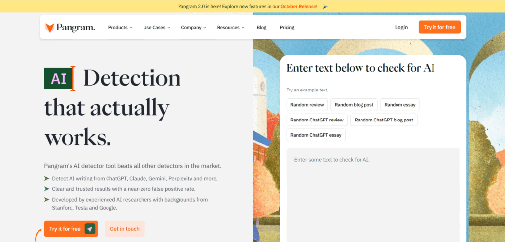 Pangram Labs offers an AI content detection system capable of identifying which large language model (e.g., GPT, Claude, Gemini) likely generated a given text. It’s designed for enterprise clients, offering multilingual support, detailed metadata extraction, and advanced robustness against “humanized” AI content. This makes it a strong choice for legal, compliance, and cybersecurity use cases.