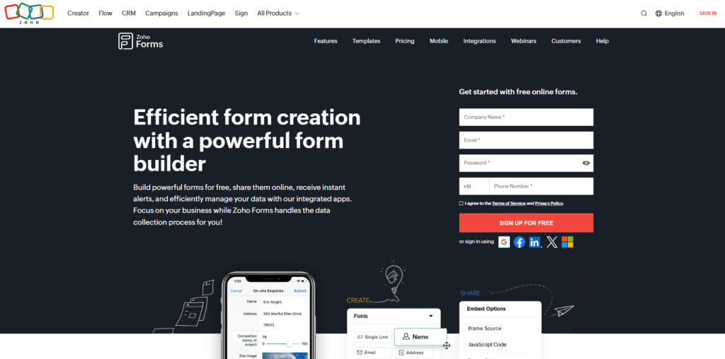 Zoho Forms leverages AI to improve form creation and data management. Its features include intelligent field suggestions, automated workflows, and detailed analytics. Zoho Forms’ AI tools make it easy to create and manage forms for various applications.