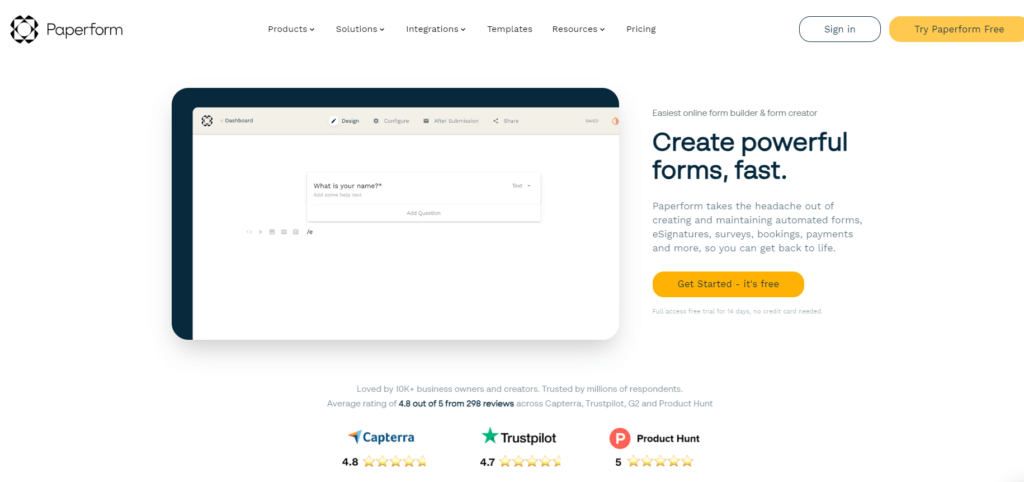 Paperform integrates AI to simplify the form-making process. It offers features like predictive text, smart templates, and automated data analysis. Paperform’s AI tools help create engaging and efficient forms for any purpose.