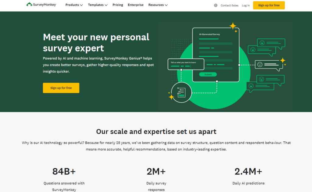 SurveyMonkey leverages AI to optimize survey creation and response analysis. Its AI-driven features include question recommendation, response prediction, and data visualization, helping users create effective surveys and analyze results with ease.