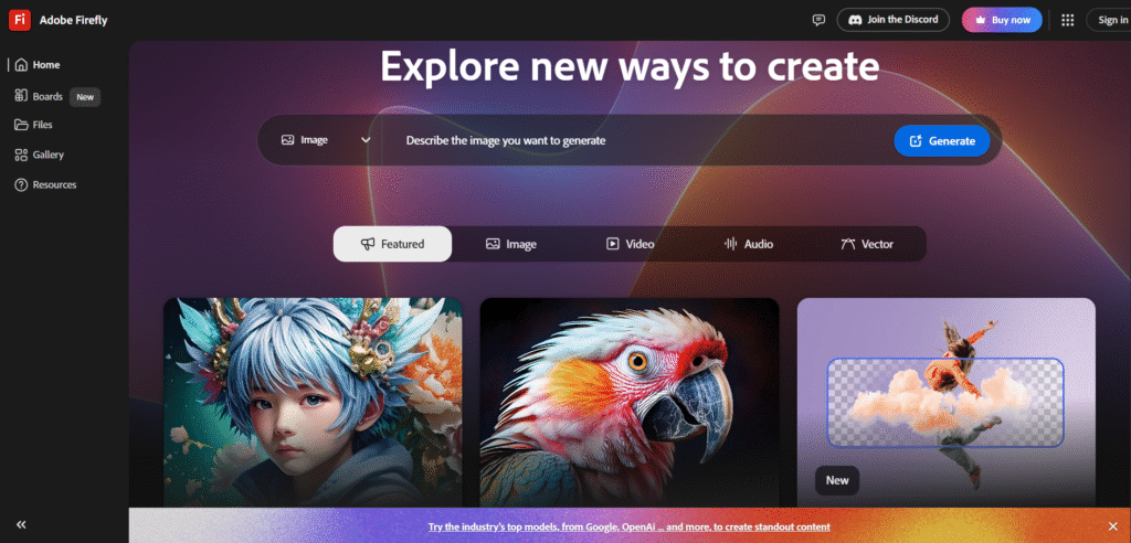 Adobe Firefly brings generative AI directly into the Creative Cloud ecosystem.