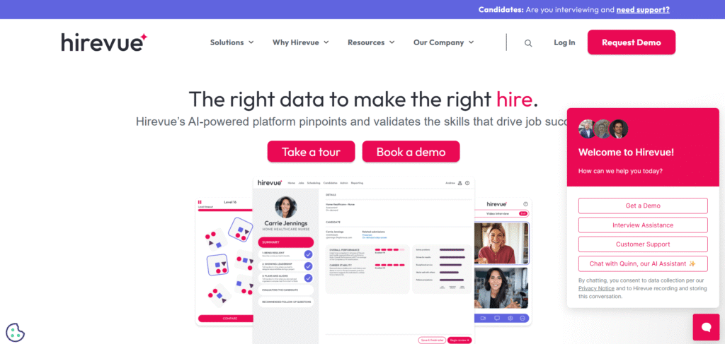 HireVue uses AI-driven video interviewing and assessment analytics to evaluate candidates’ communication skills, cognitive ability, and behavioral traits. It helps recruiters make faster and more objective hiring decisions by analyzing facial expressions, speech tone, and word choice. HireVue’s structured AI insights reduce bias and improve hiring consistency across teams.