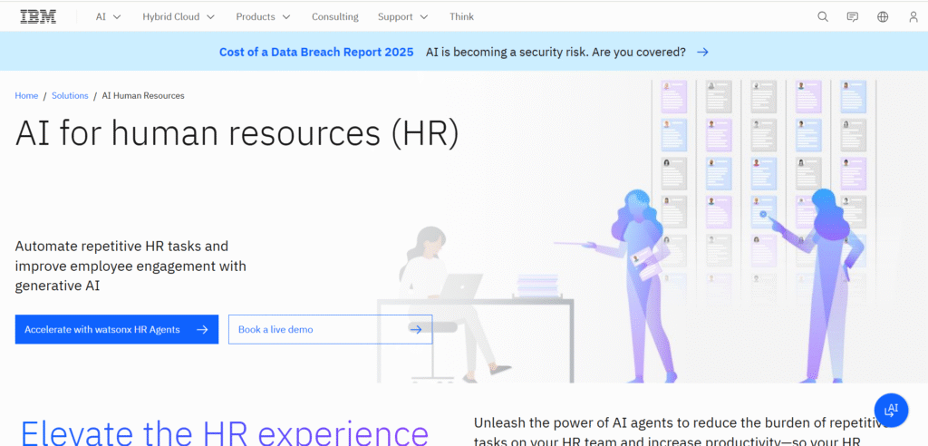 IBM Watsonx brings AI-driven insights and virtual assistants into HR workflows. It supports employee self-service for HR queries, automates case management, and provides real-time workforce analytics. The system also helps HR teams understand engagement trends, attrition risks, and training needs using advanced predictive analytics.