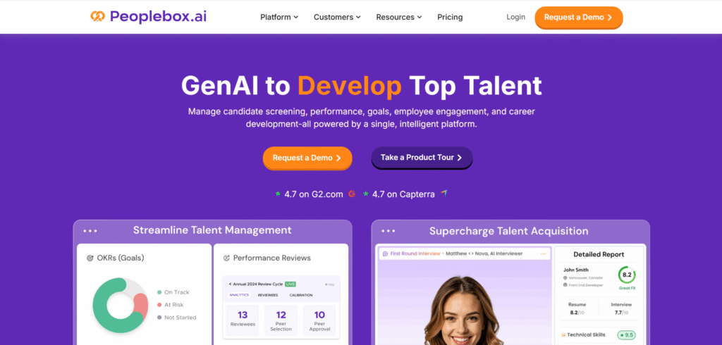 Peoplebox.ai is an AI-driven performance and talent management platform that unifies goal-setting (OKRs), employee engagement, and performance analytics. It provides predictive insights into employee performance, retention, and satisfaction trends. The AI engine also helps HR teams identify high performers and engagement risks early on.