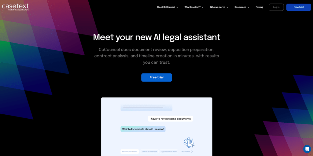 Casetext is an AI-based legal research platform that offers features like CARA A.I., which provides relevant case law recommendations based on the documents you upload. This tool saves time by quickly identifying pertinent legal precedents and enhancing the quality of legal research.