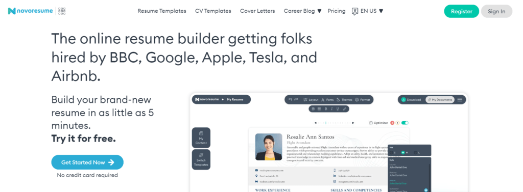 NovoResume stands out with its interactive templates and section-based customization. The real-time feedback feature helps users make improvements on the go, ensuring a polished final product.