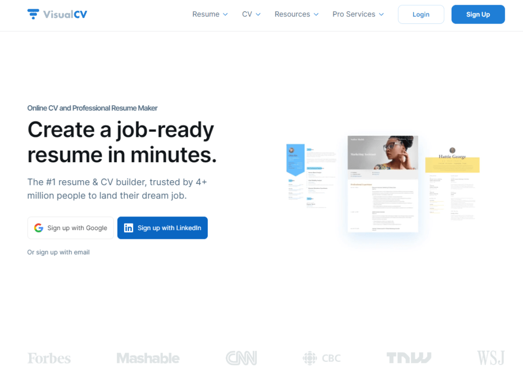 VisualCV offers both visual and text-based resume options, catering to a wide range of preferences. It integrates with portfolio websites, allowing users to showcase their work. The real-time resume review feature ensures that your resume is always top-notch.