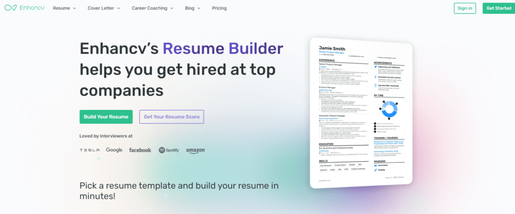 Enhancv is known for its unique, customizable templates and content suggestions. The real-time editing feature makes it easy to tweak your resume until it’s perfect.