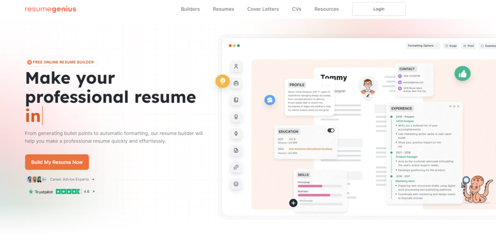 ResumeGenius provides a guided resume builder with industry-specific templates. Its focus on ATS-friendly designs increases the likelihood of your resume getting noticed.