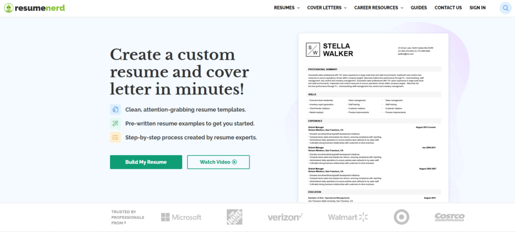 ResumeNerd | Step-by-Step Guidance | $7.95/month | 4.2/5 |