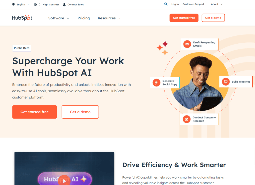 HubSpot’s AI-powered tools help create detailed user personas by analyzing customer data from various sources. Its CRM platform integrates AI to provide insights into user behavior, preferences, and engagement, making it easier to tailor marketing strategies.