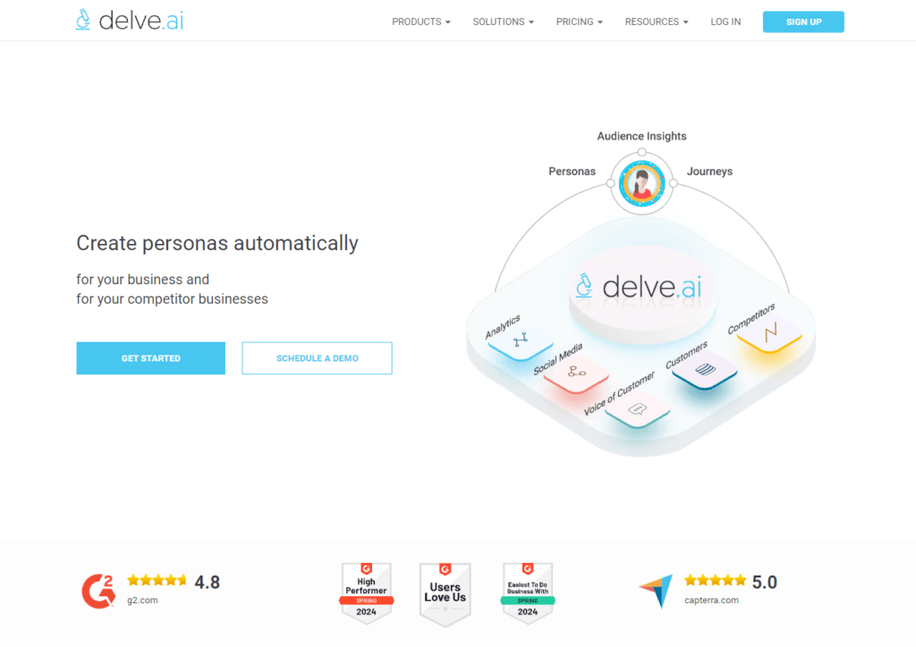 Delve AI’s Personas tool uses AI to generate dynamic user personas from Google Analytics data. It helps businesses understand their audience’s demographics, interests, and behavior patterns, facilitating more effective marketing campaigns.