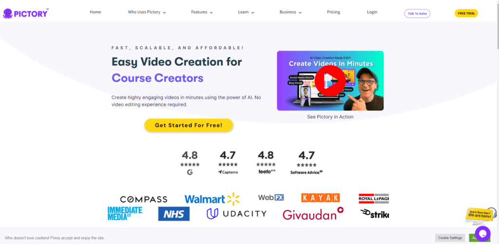 - Content Summarization: Pictory converts long-form content into short, engaging videos, ideal for social media.