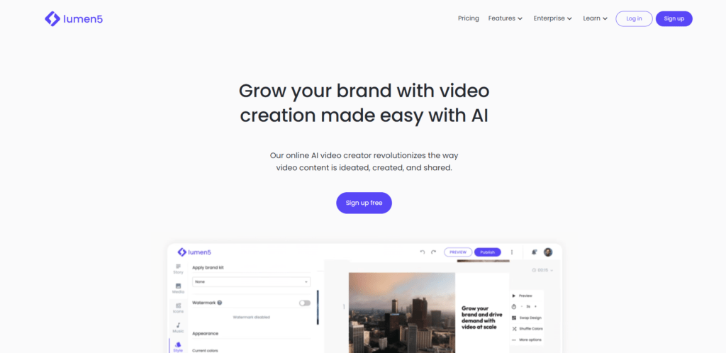 Lumen5 is an AI-powered video creation platform designed for social media marketers. It converts text content into engaging videos by pairing it with relevant visuals and music. Lumen5’s AI-driven interface makes video production accessible to users with no video editing experience.