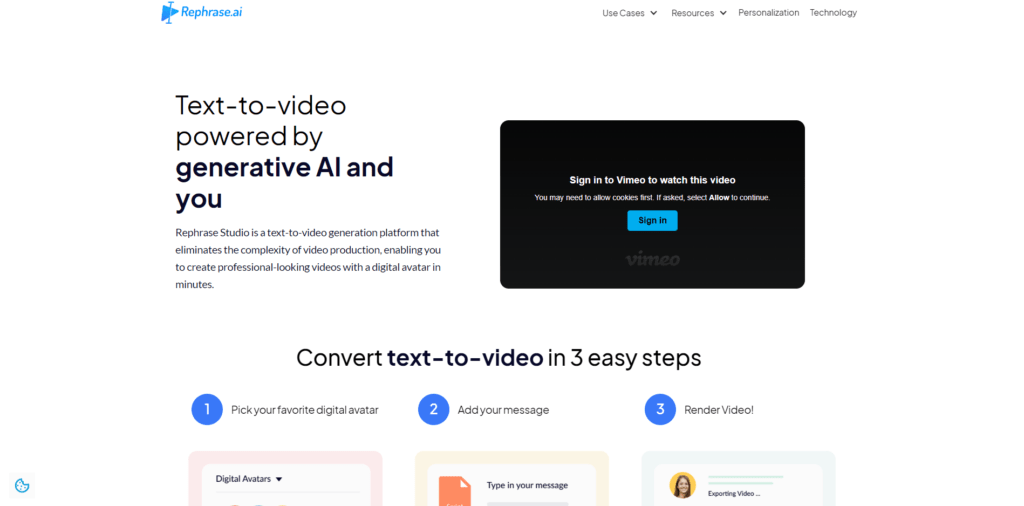 - Rephrase.ai: Generate personalized video messages with AI avatars.