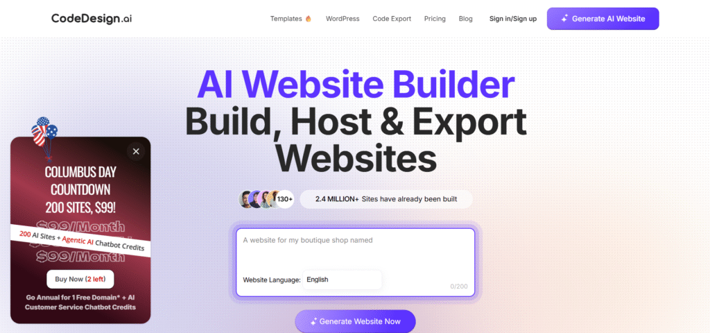 Best For: Entrepreneurs, freelancers, and agencies needing instant websites.