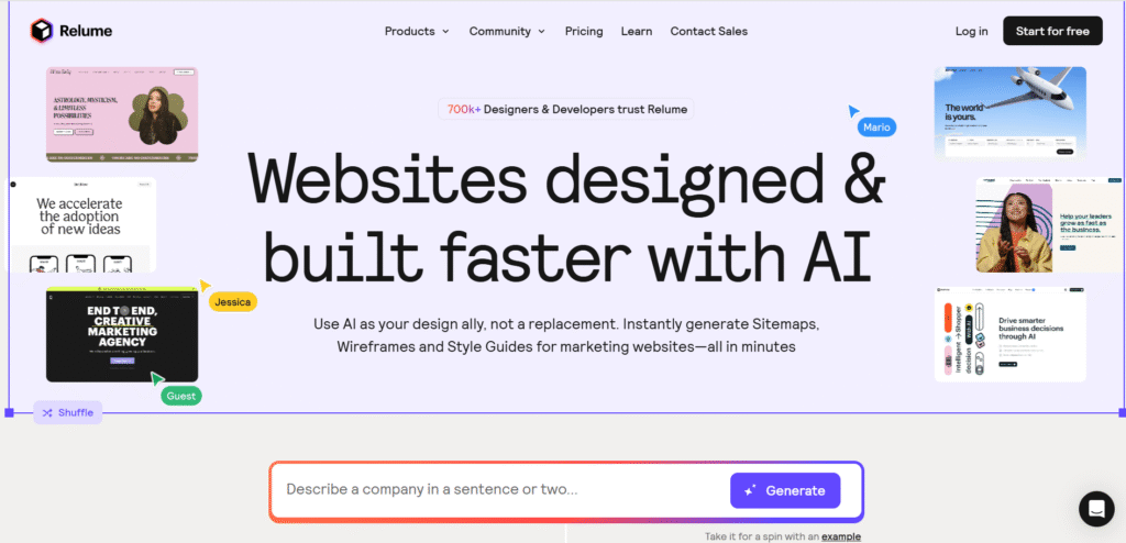 Relume revolutionizes UX/UI prototyping by generating site maps and wireframes using AI. You can describe your brand or product, and Relume creates a ready-to-edit structure that integrates perfectly with Figma or Webflow. It’s perfect for designers who need to quickly visualize or pitch layouts before building them.