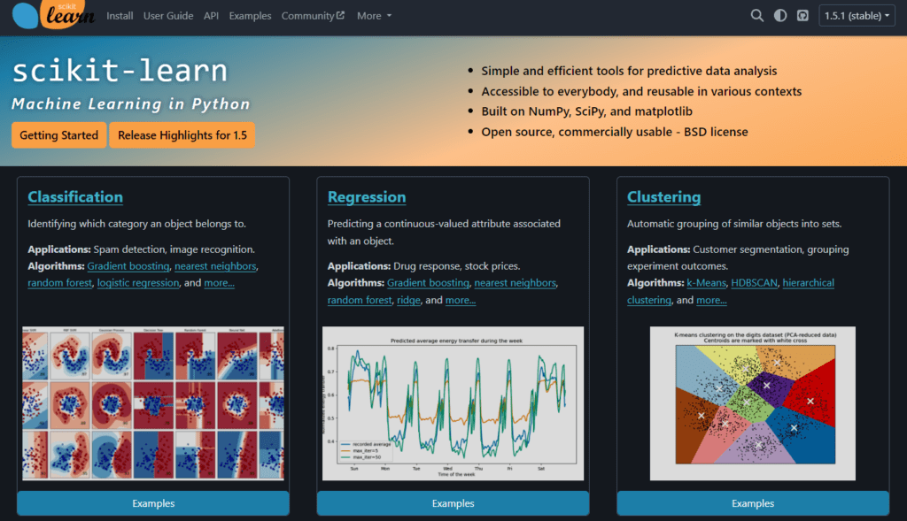 - Extensive library of ML algorithms