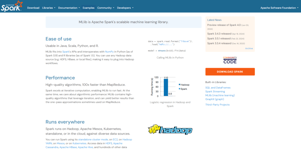 - Scalable machine learning library