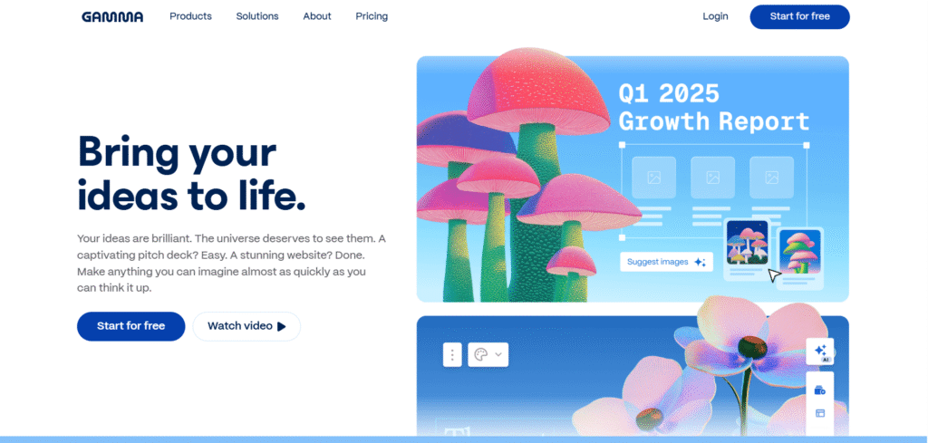 You just enter a topic or paste your content — and Gamma instantly generates a beautiful, interactive presentation with structured sections, visuals, and transitions.