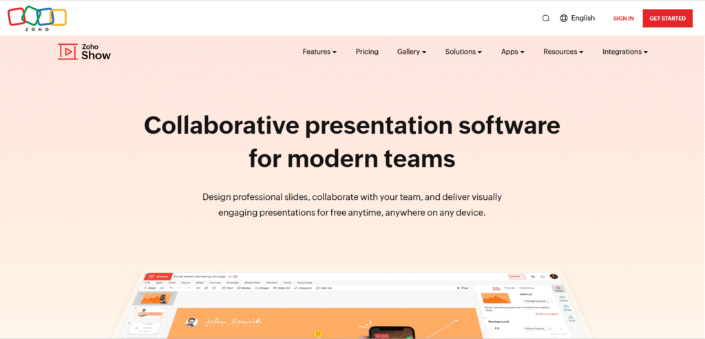 Zoho Show’s Zia AI assistant can generate presentation outlines, summarize notes, and enhance slide visuals automatically.