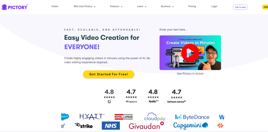 Pictory is an AI-powered video creation tool that helps users turn long-form content into short, shareable videos. It’s especially useful for marketers and content creators looking to repurpose webinars, podcasts, and articles.