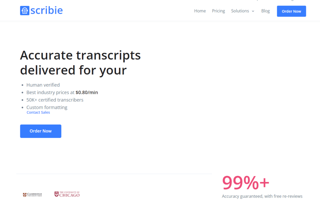 Scribie | $0.10/min | High (manual) | Easy | Manual and AI options |